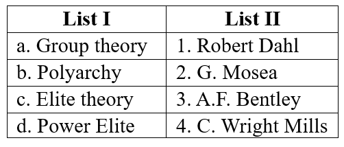 4. Match the List I with List II and select your answer from the codes given below: (KARNATAKA SET 2017 PAPER II)